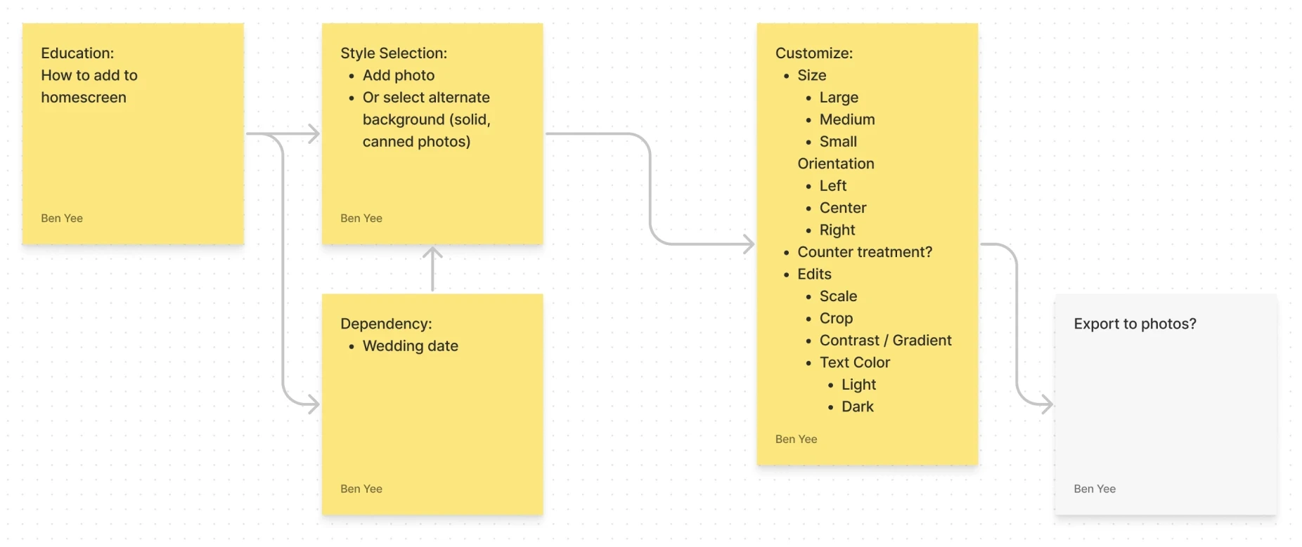 Our basic assumptions were that it would need to be customizable with a wedding date and photo. The engineering effort was already half done from a recent hackathon effort, so the motivation and support to get this project over the finish line were high.