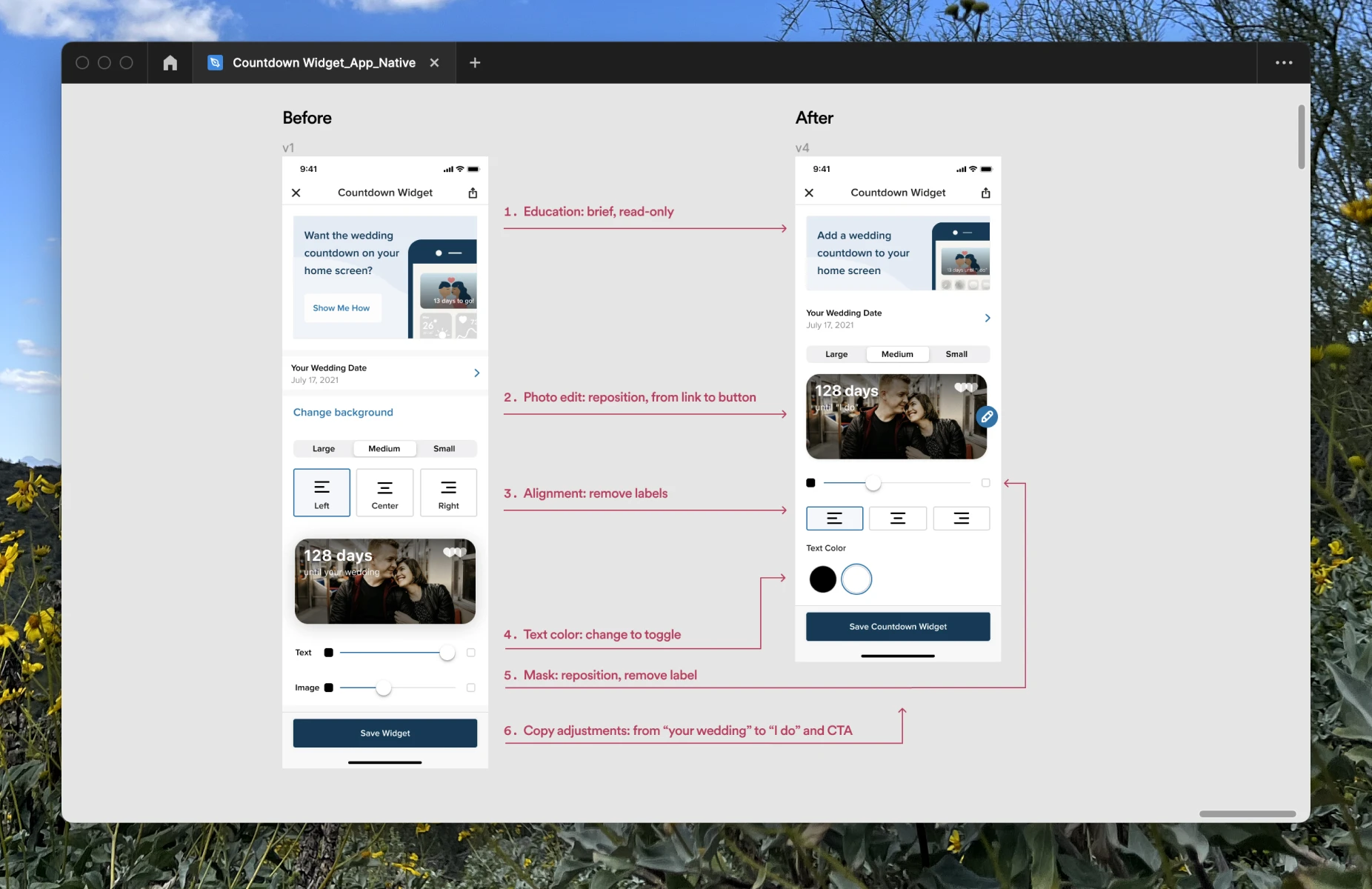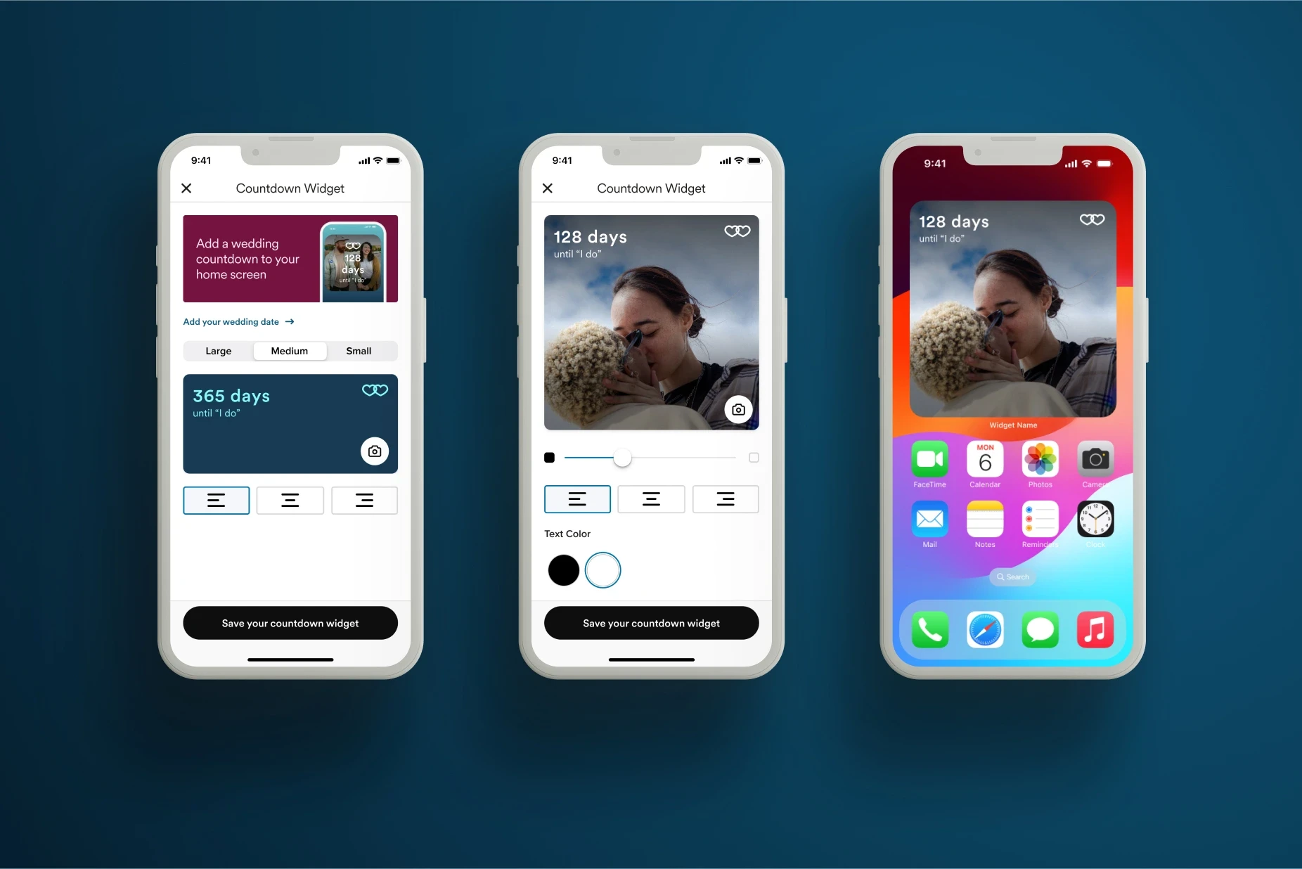 Apple's new iOS allowed users to create app-specific widgets for use on the home screen. From listening to newly engaged couples, we discovered an appetite for a wedding countdown that could be easily accessed, so we wanted to build our own widget.